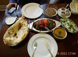 Vegetarian dinner,with three seasonal vegetables, dal makhani, basmati rice, raita, salad and desert